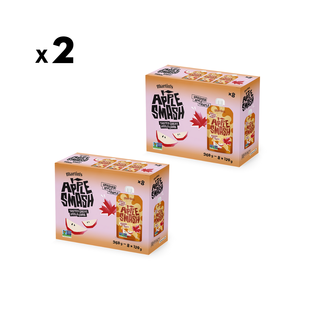 Apple Smash is an on-the-go snack that is Tasty by design. Nutritious by Nature.™ Larger than a standard 90g pouch, Apple Smash is made with simple ingredients, and contains no added sugar, artificial colours or flavours.